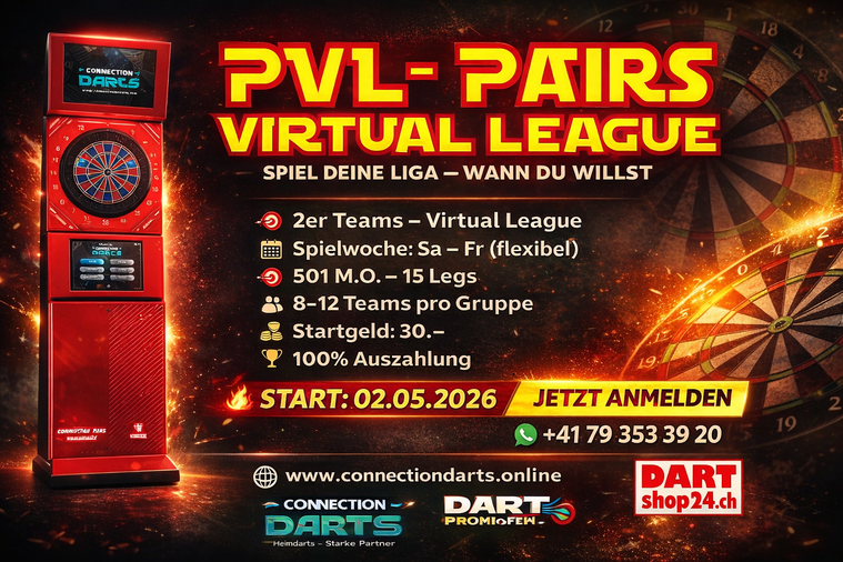 👉 Jeder Spieler muss bei Connection Darts registriert sein, damit er einem Team hinzugefügt werden kann. Neue Spieler können die Registrierung direkt am Dartautomaten durchführen.